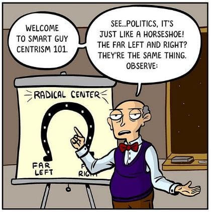 Most people thing “centrist” means “moderate”, but it ain’t necessarily so.